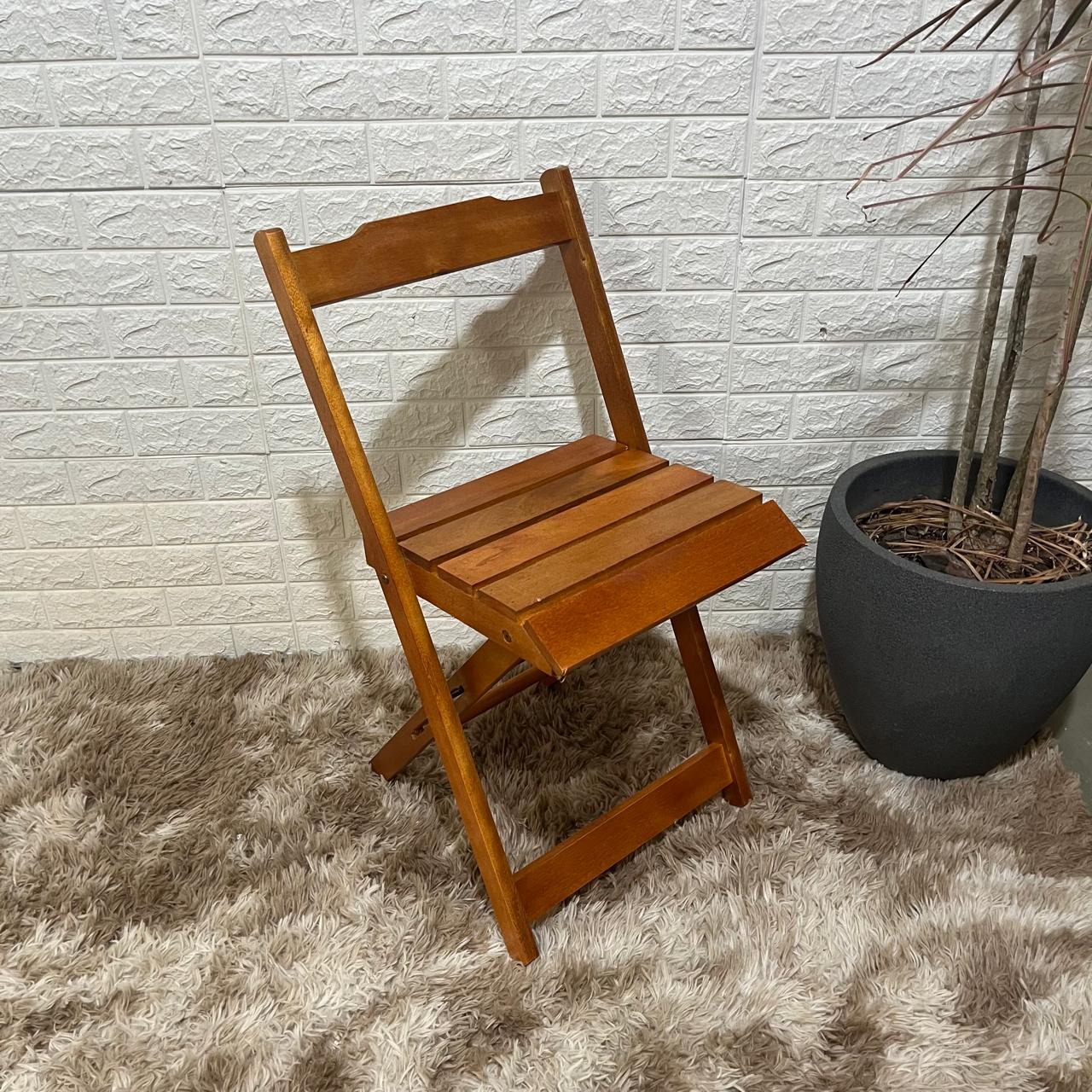 Com acabamento em verniz protetor, a cadeira possui maior resistência contra agentes nocivos que podem danificar a madeira. Seu sistema dobrável facilita o armazenamento e o transporte, tornando o móvel versátil para salas de jantar, áreas gourmet, sacadas, eventos e ambientes comerciais.
