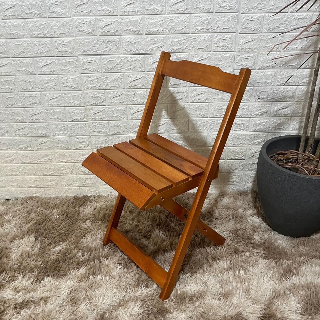 A cadeira dobrável de madeira maciça possui um visual elegante e atemporal, que combina facilmente com diferentes estilos de decoração. Sua estrutura em madeira natural transmite resistência e sofisticação, enquanto o sistema dobrável proporciona mais praticidade no dia a dia.