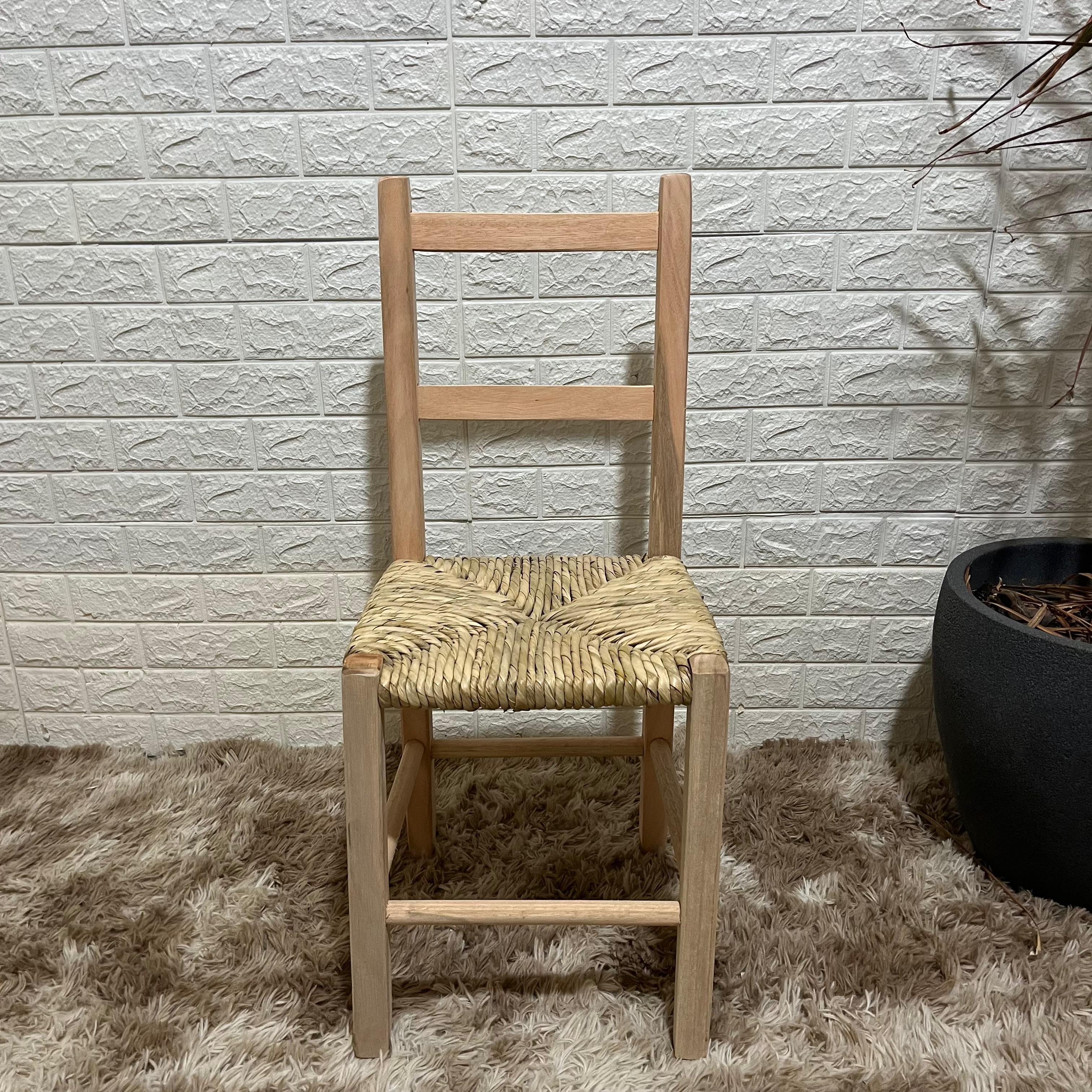 A cadeira de palha em madeira maciça possui um design que combina rusticidade e elegância. O assento em palha natural trançada à mão traz um charme artesanal que valoriza qualquer ambiente.