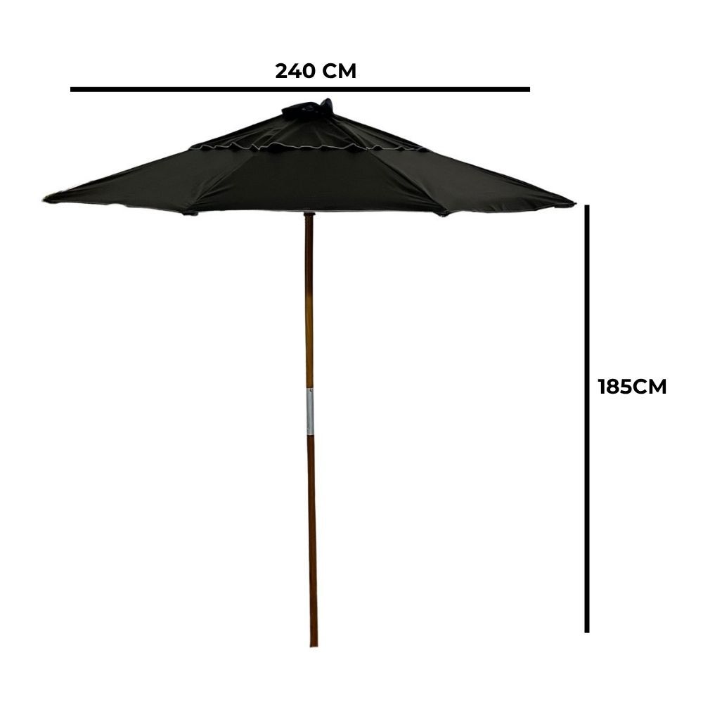 Você receberá um Conjunto dobrável 120x70 Mesa com 4 cadeiras na cor imbuia/preto + ombrelone na cor preto/branco.