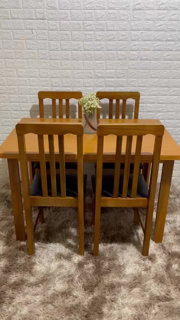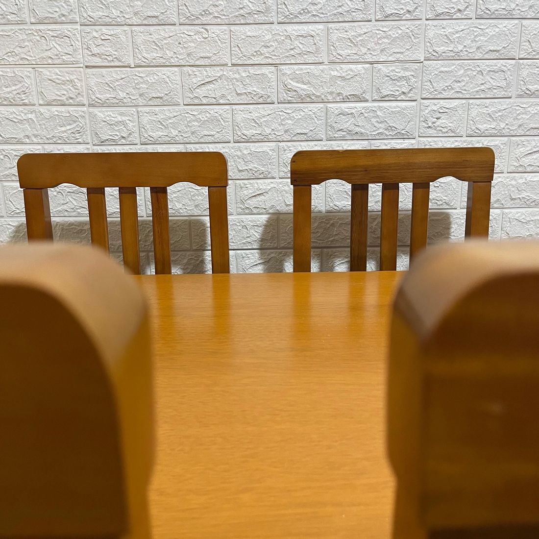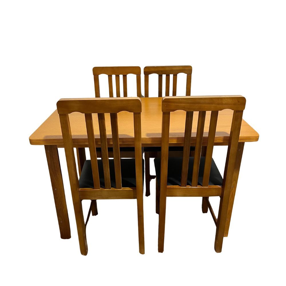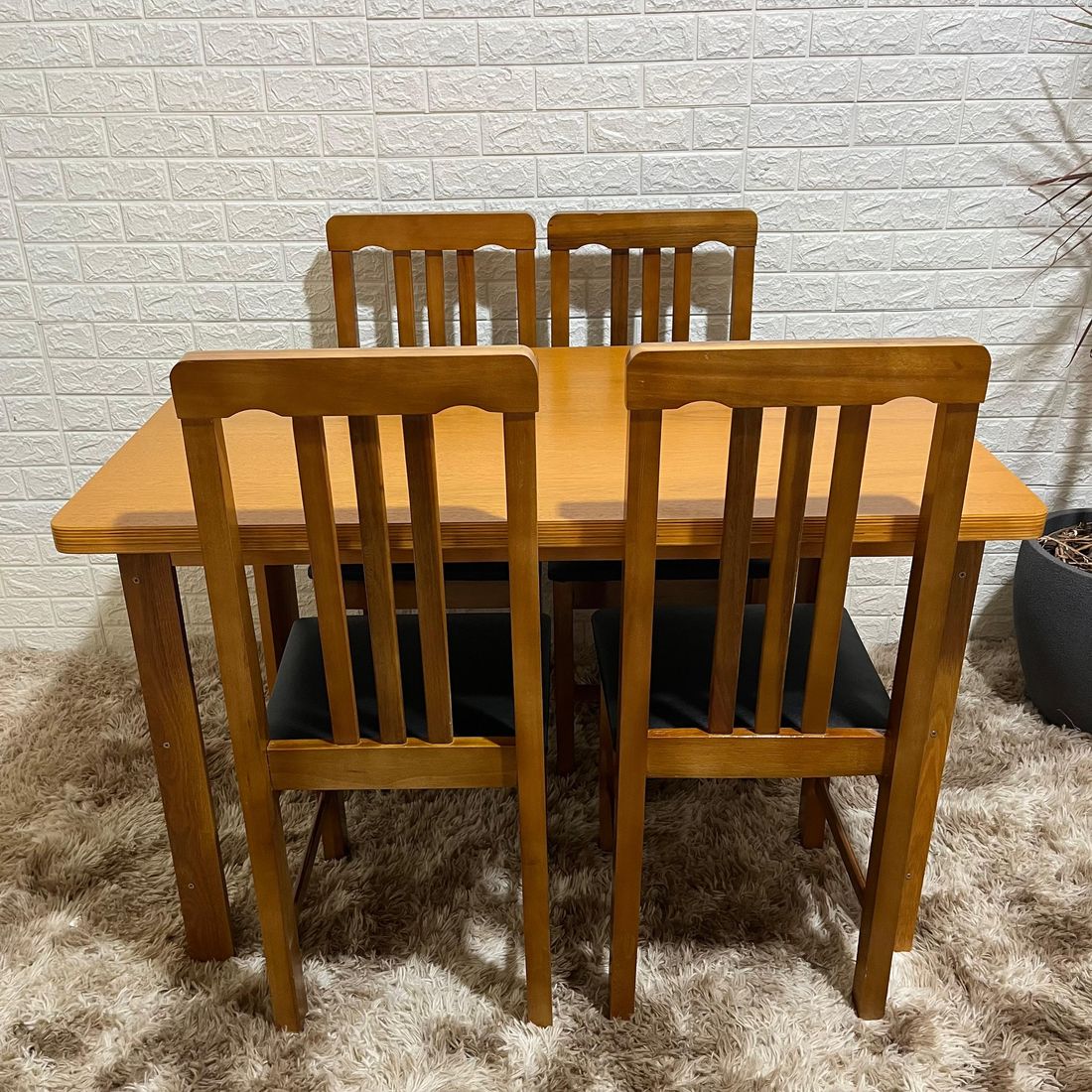 Com encosto anatômico e estrutura robusta, as cadeiras garantem conforto. A mesa retangular otimiza o espaço e aproxima as pessoas.