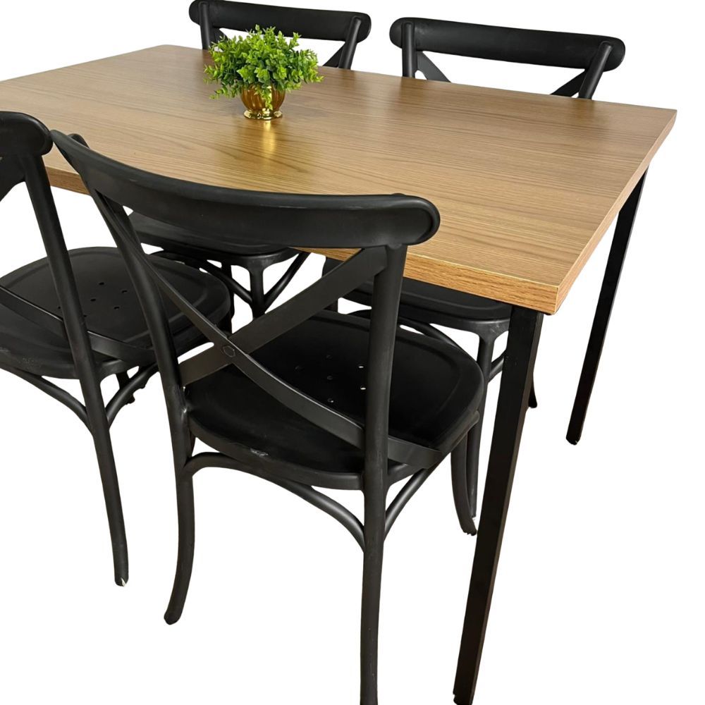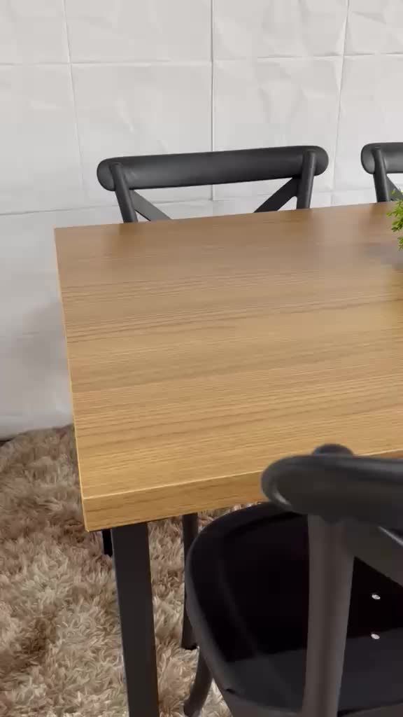 Com um visual moderno e sofisticado, o conjunto une materiais que estão em alta na decoração: madeira e metal. A mesa com pés em ferro traz um estilo contemporâneo, enquanto as cadeiras design complementam com leveza e um formato diferenciado.