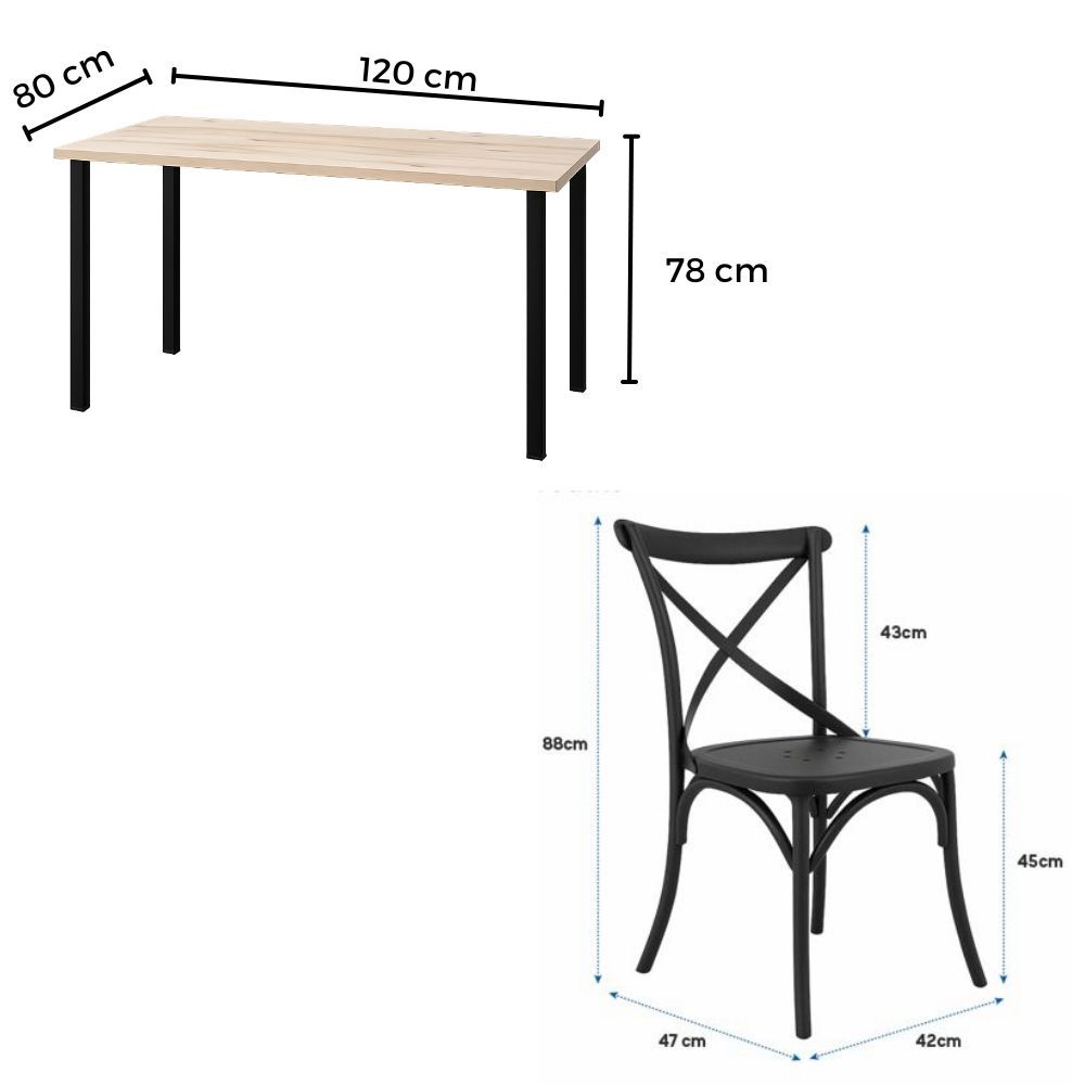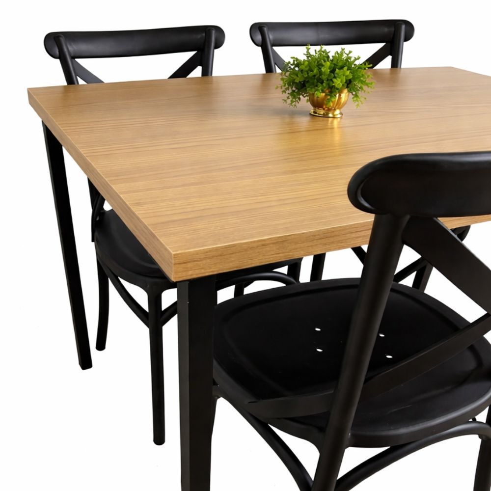 A mesa conta com estrutura em MDF e pés em ferro com tratamento antiferrugem, garantindo maior durabilidade e estabilidade. As cadeiras em polipropileno oferecem conforto, praticidade e um visual atual, perfeito para compor diferentes estilos de decoração.