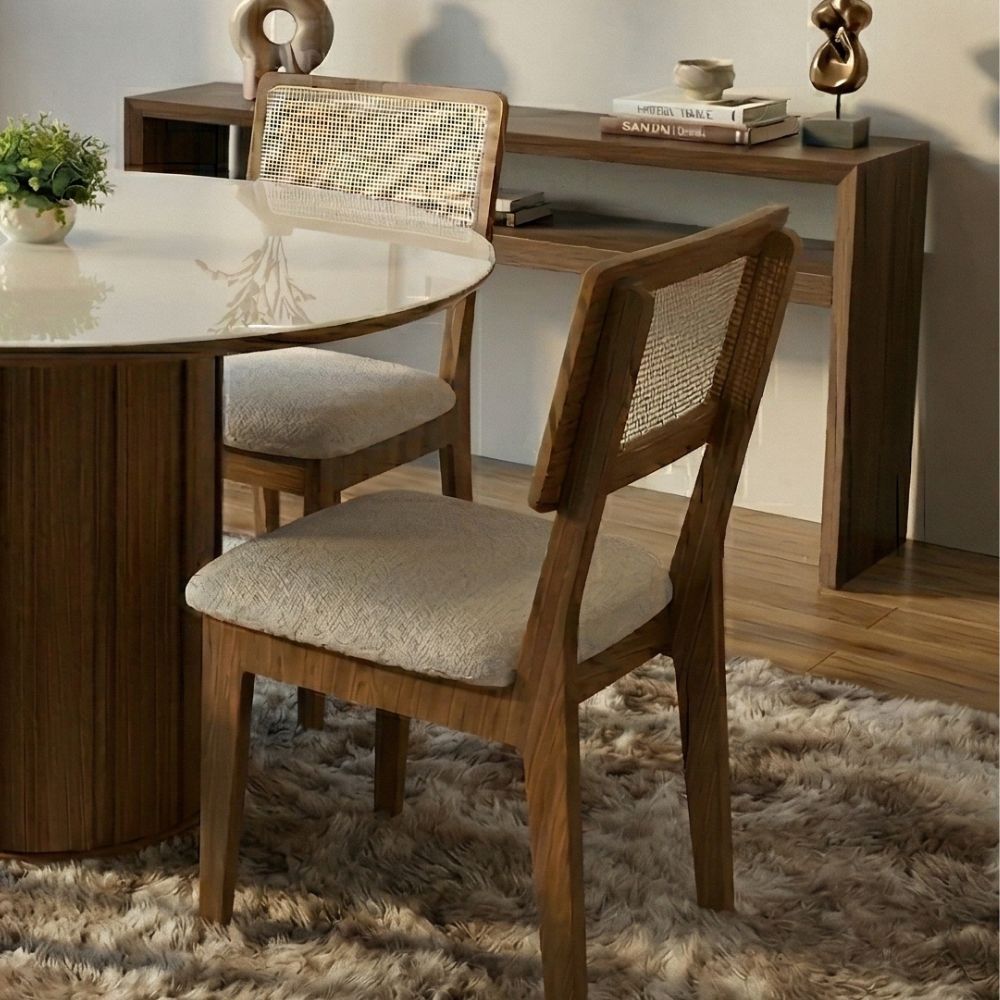 O conjunto de mesa com cadeiras estofadas é ideal para quem busca um ambiente moderno, elegante e funcional para salas de jantar, áreas gourmet ou varandas. Com design sofisticado e minimalista, valoriza o espaço e se adapta facilmente a diferentes estilos de decoração.