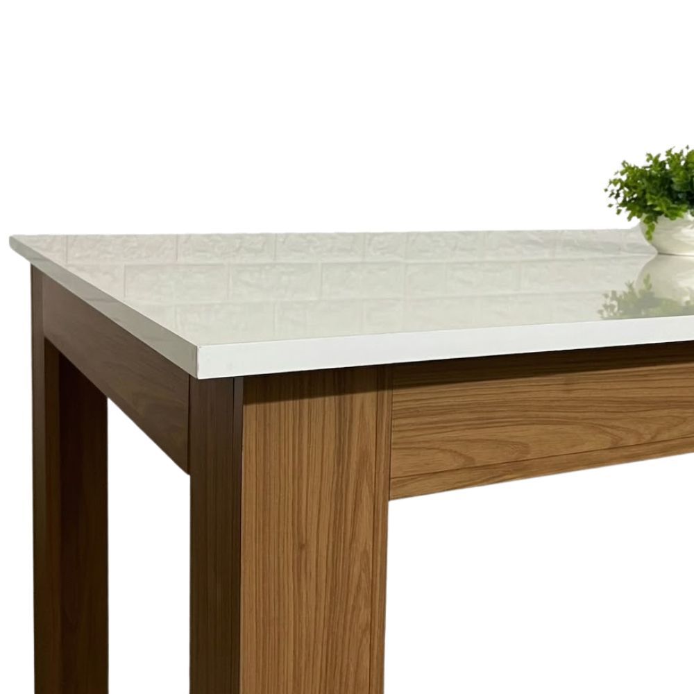 Fabricada em MDF com acabamento em pintura UV, a mesa apresenta boa resistência ao uso contínuo e facilidade na limpeza.