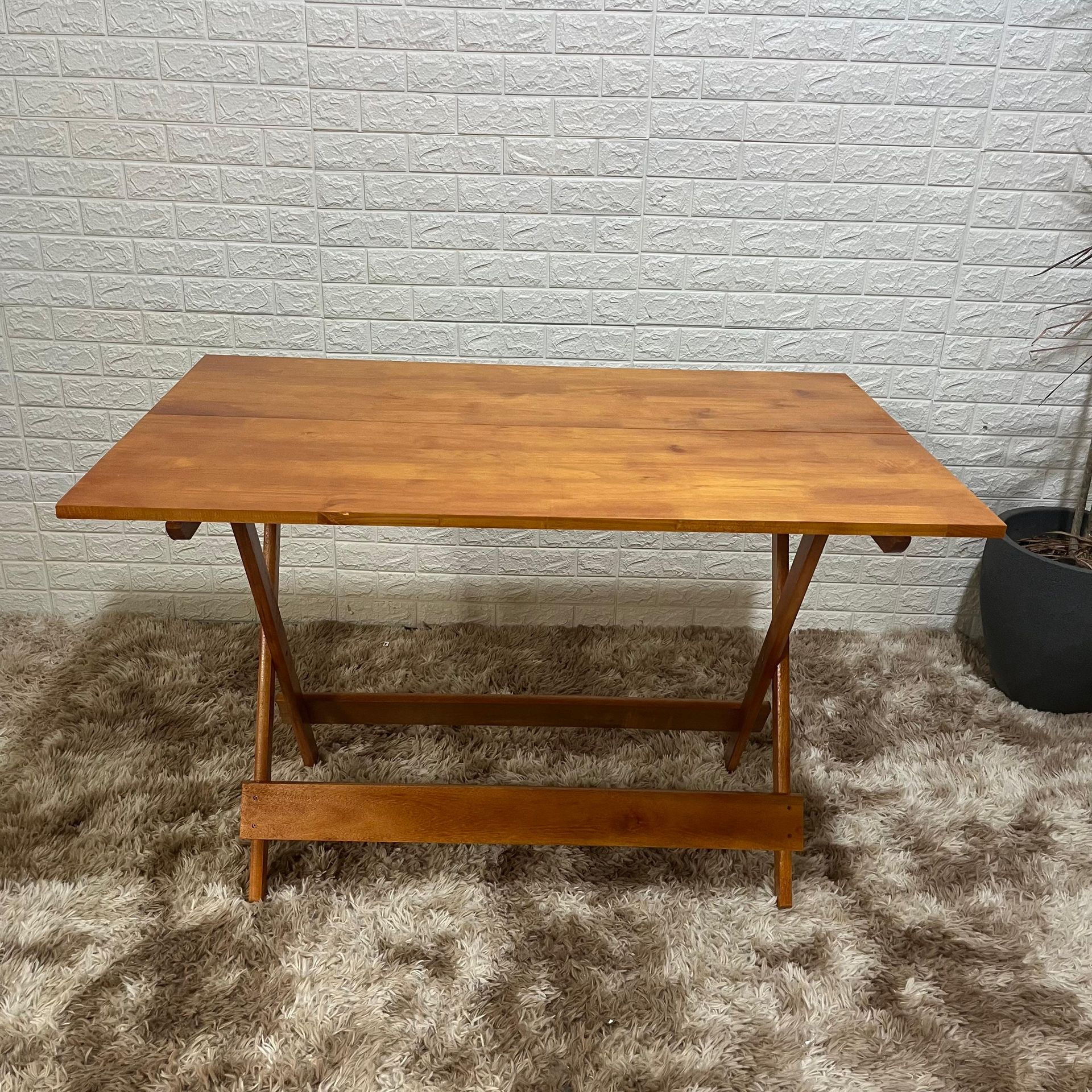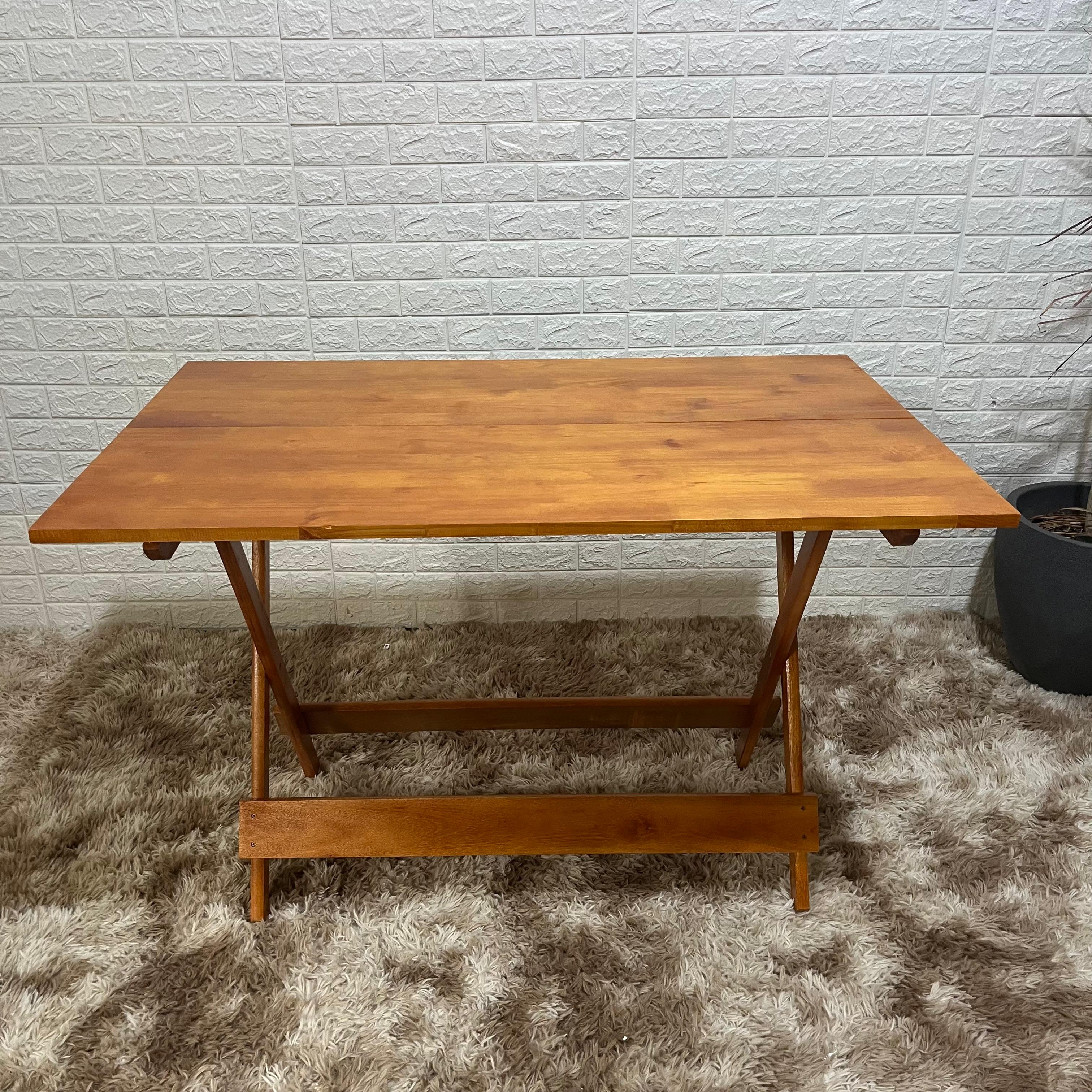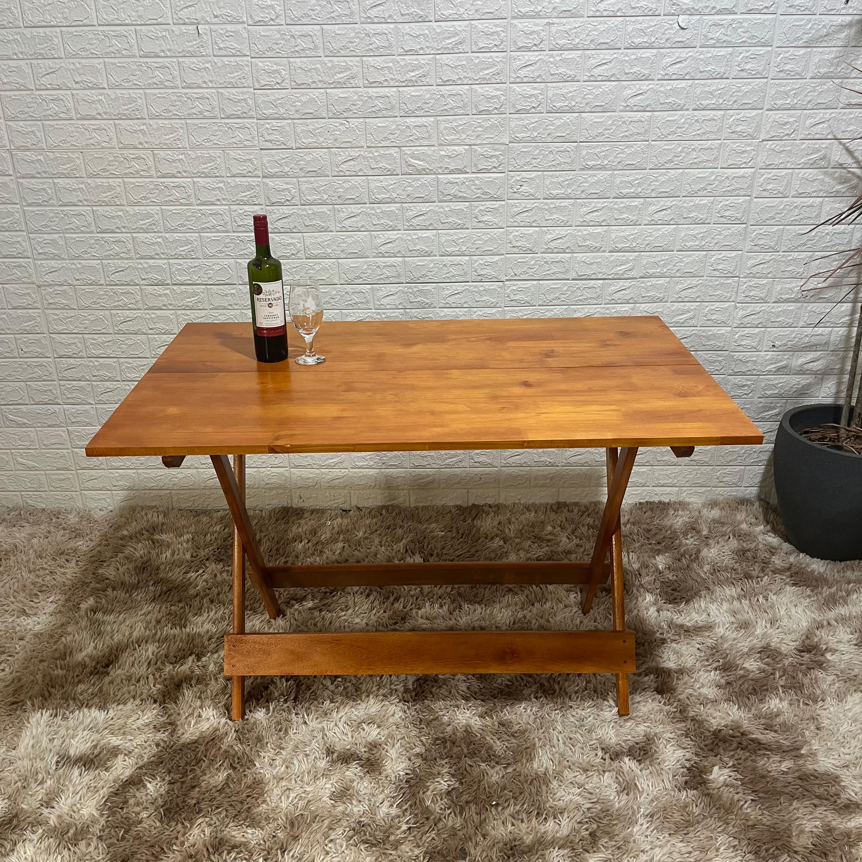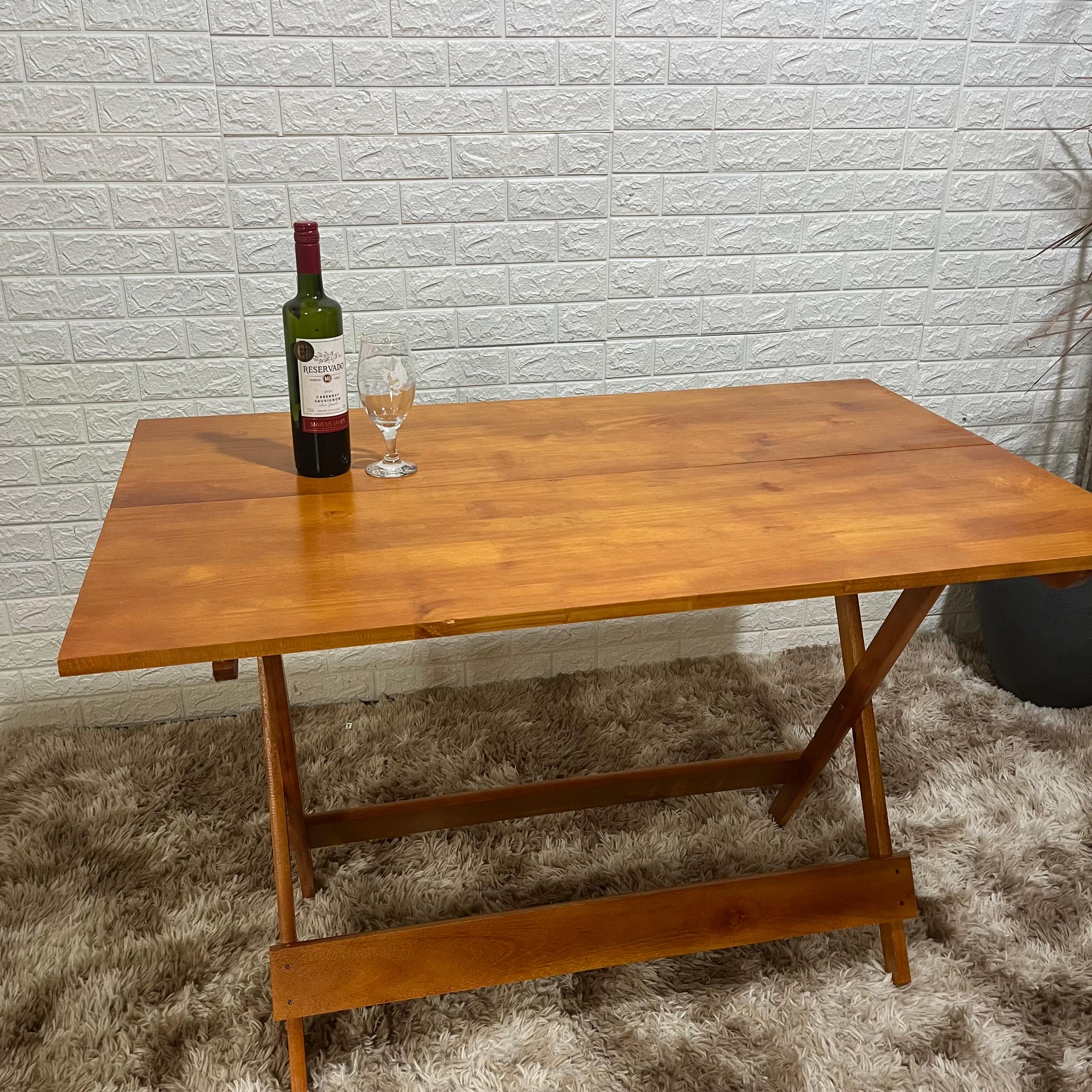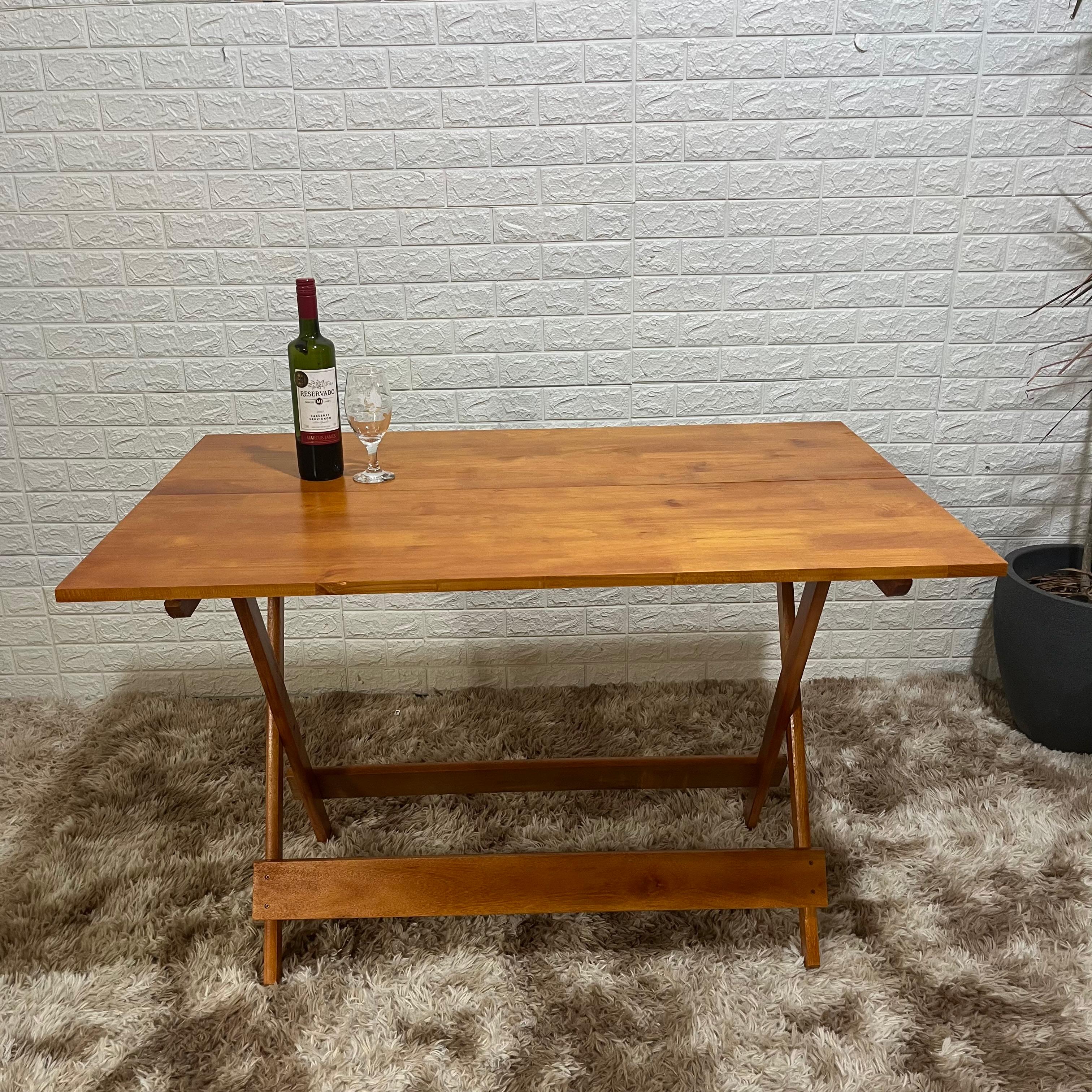 Com estrutura dobrável e dimensões amplas, a mesa oferece praticidade para diferentes ambientes. O formato 120x75 proporciona espaço confortável para refeições e encontros, enquanto o sistema dobrável permite guardar a mesa com facilidade quando necessário.